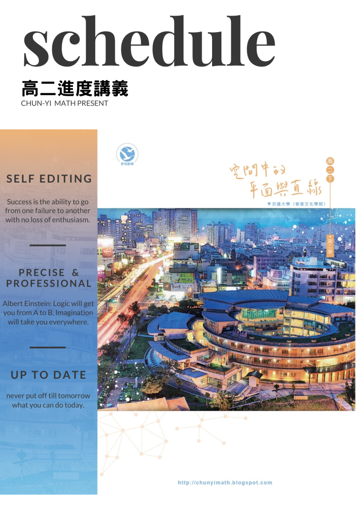 我們蒐集北中南各區域月考考題,再從這些考題中挑選出最常見、最符合段考及大考趨勢的題目,作為群翊的教材。 且隨著課綱學制改變,我們每年都會改版講義。配合課綱及考試趨勢更新重點,加入最新的段考與大考試題,讓學生擁有最新最完整的學習資源。 每次段考前,除了針對不同學區額外製作專屬的段考衝刺講義外,這些歷屆段考試題,也絕對是學生考前複習的最佳利器。 108課綱強調螺旋式學習,同樣的章節在高一、高二、高三都有教,但隨著年級上升難度也會跟著提升。為因應新制課綱,我們將學測複習的部分分成兩大主軸。 第一部分為逐冊章節式複習:為考量學生準備狀況不同,將講義的範例及練習題各分成兩個層次。幫數學狀況不理想的學生規劃第一階段,對於數學要挑戰頂標與滿級分的學生就必須準備到第二階段,達到因材施教,徹底讓學生在大考前做最有效率的時間分配。 第二部分為主題式複習:打破所有章節和年級的框架,在代數、幾何、函數、機統上統整出一套思考方向,培訓學生在碰到考題能激發關鍵想法的能力。